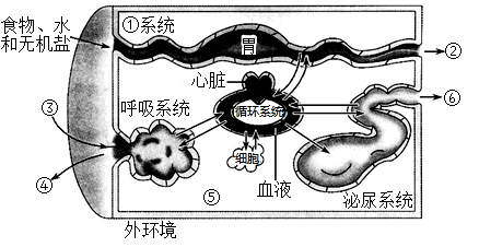(1)图中食物、水和无机盐,经①________系统处理后才能进入循环系统,最后由大肠排出的是②________。
