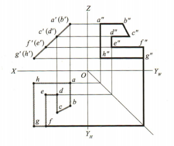 2、已知平面图形的AB、GH为正垂线,试补全平面图形的投影。