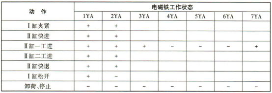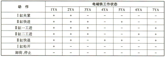 (6)填写动作循环表(电磁铁通电为“+”,失电为“-”)。