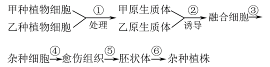 2、下图表示利用耐酸植物甲(4n)和高产植物乙(2n)培育高产耐酸杂种植物的过程(图中标号表示过程或处理手段),下列相关叙述正确的是( )
