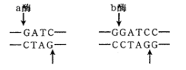 解 析:A、a酶与b酶切断的化学键相同,都是磷酸二酯键,A正确; B、据图分析,酶a的识别序列是-GATC-,酶b识别序列是-GGATCC-,酶b的识别序列包含酶a的序列,故能被b酶识别并切割的序列也能被a切割,B正确; C、a酶的识别序列比b酶短,识别序列越短,含有的识别位点就越多,因此在相同的DNA分子中b酶的识别位点明显少于a酶,C正确; D、将大量a酶和b酶切割后的片段混合,重新连接后的DNA片段全都能被a切割,但只有部分能被b酶切割,D错误。 故选D。