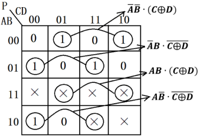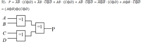 2、用最少的异或门产生8421BCD码的偶校验码。(提示:4个信息位A、B、C、D为8421BCD码,偶校验码为P)