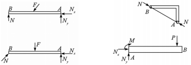 1、画出图2-2-8中所示杆AB的受力图,杆件自重不计。