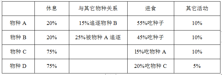 1、某生物学研究小组观察到某野外四个物种在一天中的平均活动时间(活动时间以%表示):