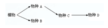解 析:(1)由表格中进食一栏可看出,该表格中存在两条食物链,其构成的食物链为植物→物种A→物种C→物种D;植物→物种B.所以营养结构关系是: