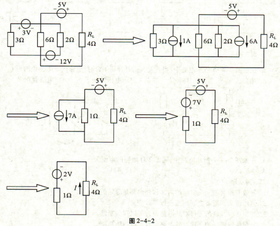1、在如图2-4-1所示电路中,试用电源等效变换的方法求负载RL的功率。