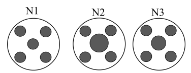 N1、N2和N3菌株(四周)对尖镰孢菌(中心)的抑制效果模式图