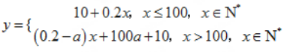 解 析:(1)i)x≤100,y=68+0.2x-58=10+0.2x ii)当x>100,y=68+0.2x-[58+(x-100)a]=(0.2-a)x+100a+10