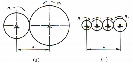 2、两轴距离为a时,通常用如图(b)所示的形式来代替如图(a)所示的形式,是因为轮系具有()的特点。