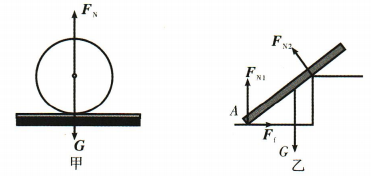 1、如图所示,甲、乙中物体均处于静止状态,试画出甲、乙中物体的受力分析图。