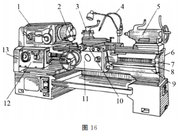 2、根据图16所示CA6140卧式车床结构,回答下列4个问题。