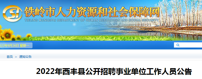 2022年西丰县事业编招聘报名时间定于10月8日9:00-2022年10月12日17:00,本次招聘采取网上报名的方式进行,考生在报名时间内登录铁岭市人力资源和社会保障网进行报名。