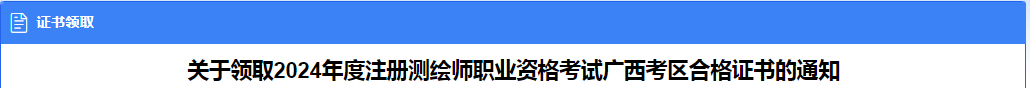 2024年度注册测绘师职业资格考试广西考区合格证书已开始发放,现将领取有关事项通知如下:
