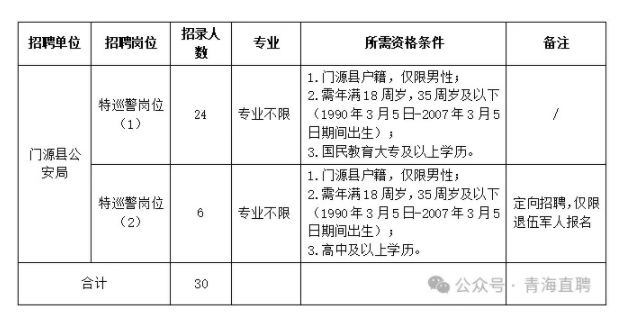 警务辅助人员作为公安机关的重要辅助力量,在处置突发事件,重大安保活动,社会面整体防控等工作中,发挥着重要作用。门源回族自治县公安局现将面向社会公开招聘30名警务辅助人员,并将相关招聘事项公告如下: