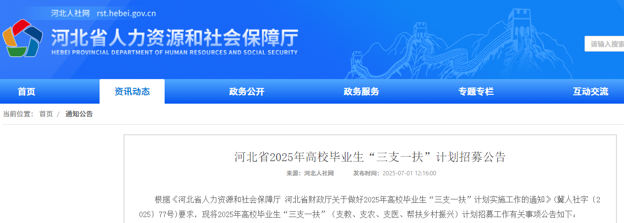 河北人社网(rst.hebei.gov.cn)该网站同步更新三支一扶招募各环节公告,考生可关注"人事考试"栏目获取最新信息.