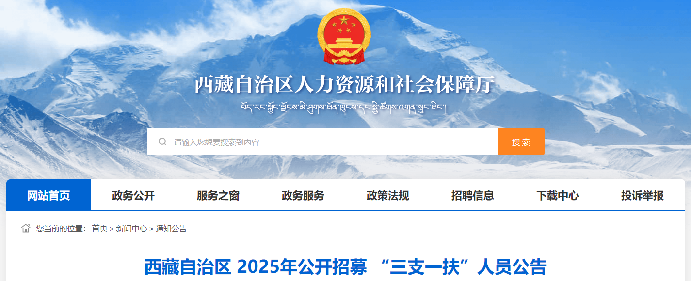 西藏三支一扶2025招聘公告已出,西藏三支一扶2025报名时间定于2025年8月11日9:30至8月15日18:00.有计划的考生朋友不要错过啦。
