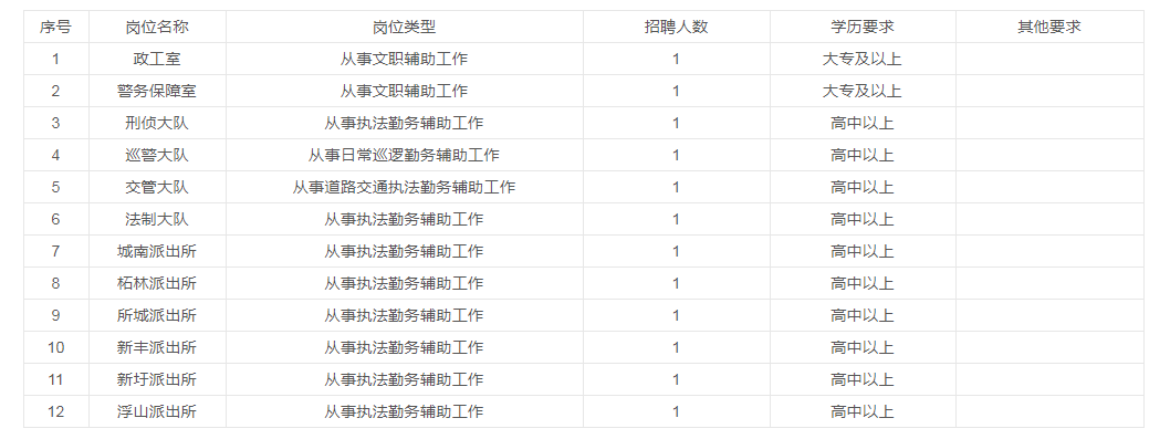 附件2: 饶平县公安局公开招聘警务辅助人员职位表