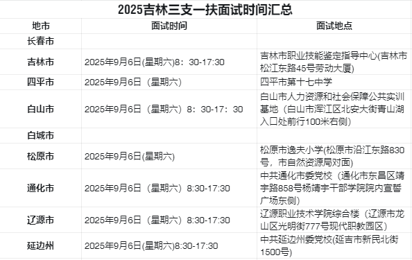 2025吉林三支一扶面试时间来了,截至目前四平出了资格复审,延边州出了面试通知,其他地区也要陆续公布了,关注本页为大家带来及时更新。