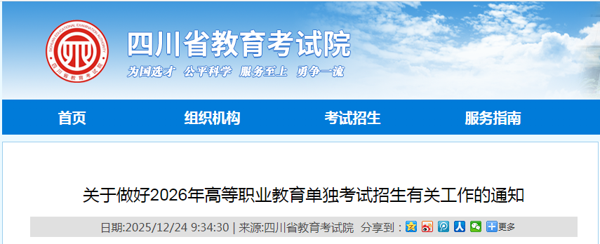 考生应在高职单招成绩发布后,于2026年4月7日9:00至4月13日17:00期间登录四川省教育考试院官方网站(https://www.sceea.cn)进行高职单招志愿填报。