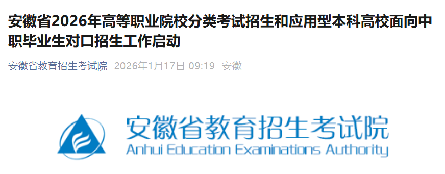 报名参加分类考试的考生为已完成安徽省2026年普通高校招生考试报名并取得考生号的考生。