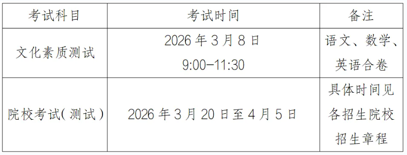 报考分类考试或对口招生的考生均须参加全省统一组织的文化素质测试,成绩达线考生方可参加招生院校组织的院校考试(测试)。符合免文化素质测试条件的考生按相应政策执行。