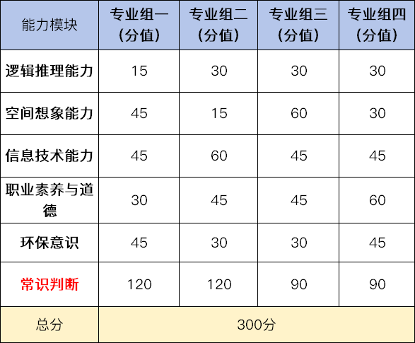 ③原有分值很高的“政治”和“国学”模块分值大幅减少,同时“通用科学基本常识”被移除。备考精力需要从这些传统通识模块,重新分配到新增的专业与素养模块上。