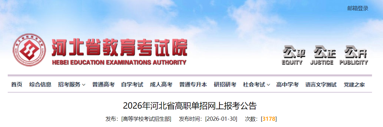 2026年我省高职单招网上报考工作将于2月3日开始,现将有关事项公告如下: