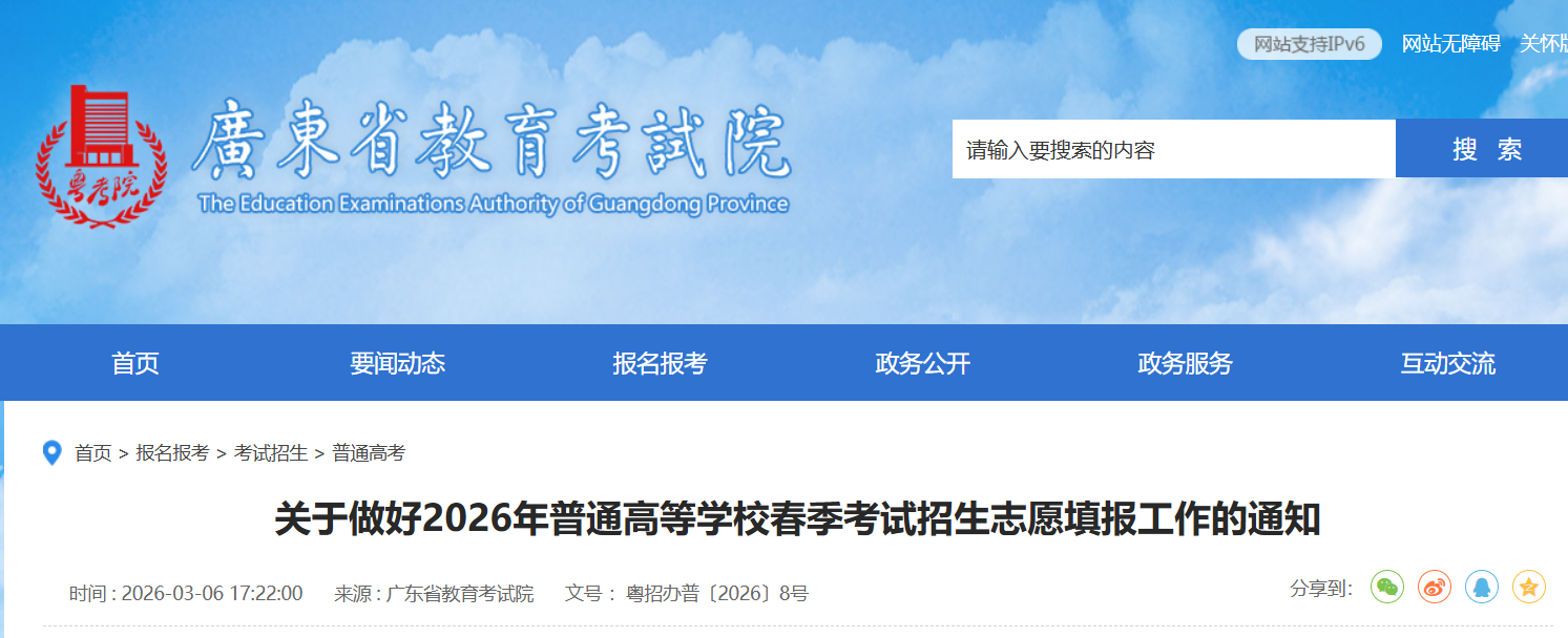 为做好我省2026年普通高校春季考试招生(下称“春季高考”)高职院校依据普通高中学业水平考试成绩招生录取(下称“依学考录取”)、普通高校招收中等职业学校毕业生统一考试(下称“3+证书”考试)招生网上志愿填报工作,现就有关事项通知如下。