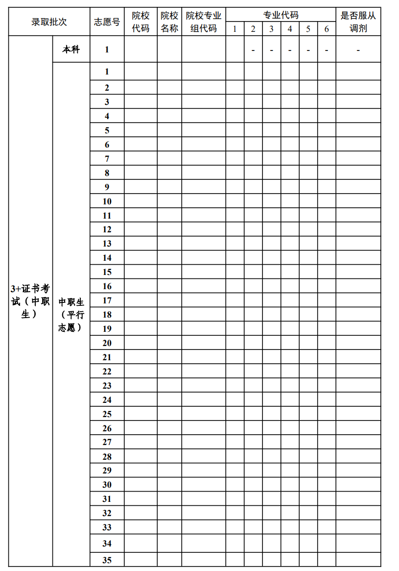 (二)“3+证书”考试招生批次及志愿设置。“3+证书”考试分本科、高职(专科)两个批次,两个批次同时填报志愿。