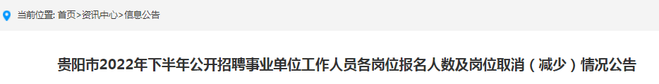 附件:贵阳市2022年下半年公开招聘事业单位工作人员各岗位报名人数及取消岗位一览表