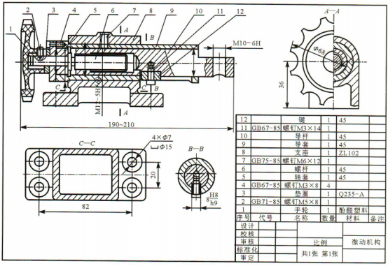 (2)装配图中应标注五类尺寸,图中的82、20、M10-6H属于()尺寸。