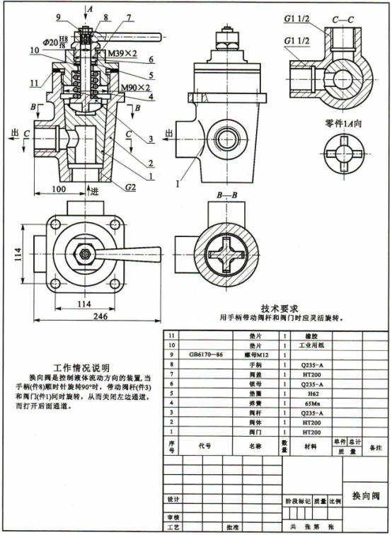 (2)该装配图专用件共()种,应称为()位()通换向阀。