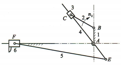 (4)该机构()(填“有”或“无”)死点位置,()(填“有”或“无”)急回特性。滑块F向左运动的速度()向右运动的速度。滑块F的工作行程为() mm。