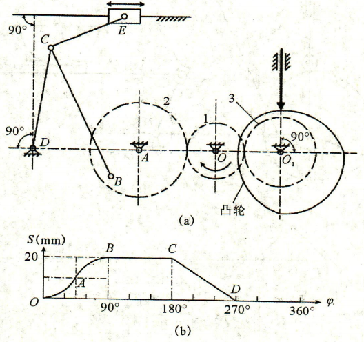 (6)四杆机构ABCD为()机构。如要增大滑块E的行程,则可增大()的长度。