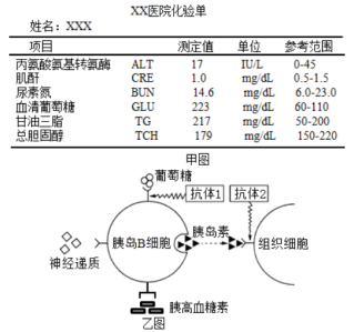 (4)甲图显示的患者需注射胰岛素治疗,说明其病因最可能是由乙图中__________(填“抗体1”或“抗体2”或“抗体1和抗体2”)引起的。