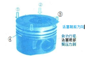 D①为第二道气环端口位置;②为油轨侧环端口位置;③为油轨侧环端口位置;④为第一道气环端口位置