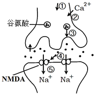 ①当兴奋传递到突触小体时,Ca2+通道开启,引起Ca2+内流,则Ca2+的跨膜运输方式是_______________。若用荧光标记技术,可观察到______________向突触前膜定向移动,从而释放神经递质谷氨酸。