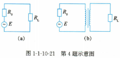 (2)如图1-10-21(b)所示,要让负载从信号源处获得最大的功率,需要在信号源和负载电阻之间接上一个匹配理想变压器。求理想变压器原、副边绕组的匝数比。