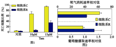 (2)科研人员测定了初次使用Tam的乳腺癌患者癌细胞(细胞C)和长期使用Tam的乳腺癌患者癌细胞(细胞R)在不同Tam浓度下的死亡率(如图1),结果为___________,表明长期使用Tam的患者癌细胞对Tam产生了抗药性。