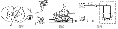 (3)图丙中若①代表小腿上的感受器,⑤代表神经支配的小腿肌肉,则③称为()。若刺激图丙中b点,图中除b点外()(字母)点可产生兴奋。