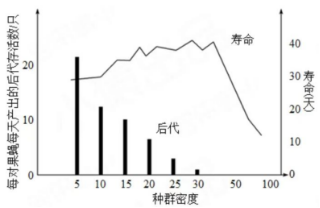 D从图中可知种群密度越大,果蝇寿命越短,后代存活率越低