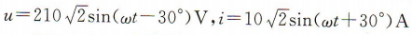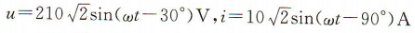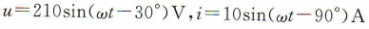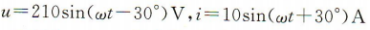 =-30°,正弦电流I=10A,电流超前电压60°相位角,则电压电流瞬时值u和i可表示为()