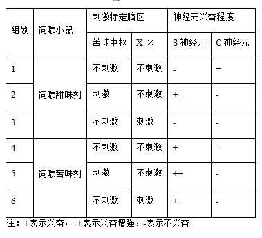 (3)综合上述实验结果,可以建立苦味中枢对脑干r区的反馈调节机制。请使用箭头“→”连接具有调节关系的区域或神经元,并在箭头上标记“+”(表示促进)或“-”(表示抑制),完善答题纸上的机制图。