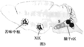 ③科研人员注射抑制剂抑制苦味中枢至X区的神经传递,重复(1)中实验,结果为Ⅱ组接近Ⅰ组结果,显著高于Ⅲ组,说明_____。