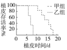 B甲组小鼠对外源供皮的免疫排斥强度大于乙组小鼠