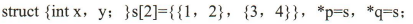 则表达式++p->x 和表达式(++q)->x 的值分别为( )