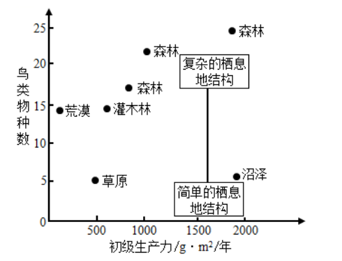 A草原和沼泽栖息地的鸟类多样性低可能是因为其结构相对较为简单