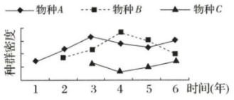 C增大物种C的种群密度会增加物种B的环境容纳量