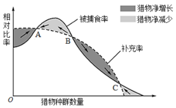 A猎物种群数量超过B点时,其种群数量会逐渐增大到C点并保持稳定