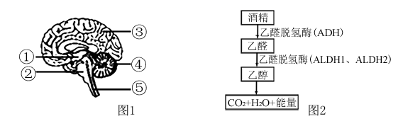 (2)人大量饮酒后,会出现意识模糊、步态不稳等症状,出现这些症状的原因是酒精分别麻醉了图1脑中的___________________________(填编号和名称),从而影响它们正常的功能。